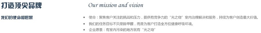 2012年公司斥巨資從德國專業(yè)空氣研發(fā)實(shí)驗(yàn)室引進(jìn)銳鈦型納米二氧化鈦研發(fā)成果,同時(shí)與國內(nèi)知名高校進(jìn)行合作,成立“光之吻”品牌,致力于為人類創(chuàng)作純凈,健康的呼吸環(huán)境,成為你身邊的健康衛(wèi)士,實(shí)現(xiàn)365天健康呼吸的夢想,目前是同類產(chǎn)品中最有競爭力的品牌之一。